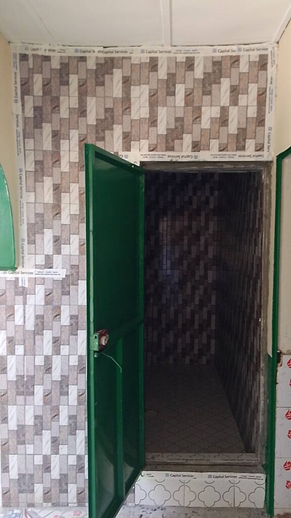 This year’s raining season brought some major issues to our compound. We had to deal with so much floodings. It would be a waste of time and material to continue constructions under such conditions. But with the beginning of October, the rainfalls stopped. And we welcome German volunteer René to our foundation, who is an experienced craftsman, and who joins our crew to continue the construction. Also, we received more donations to buy tiles.