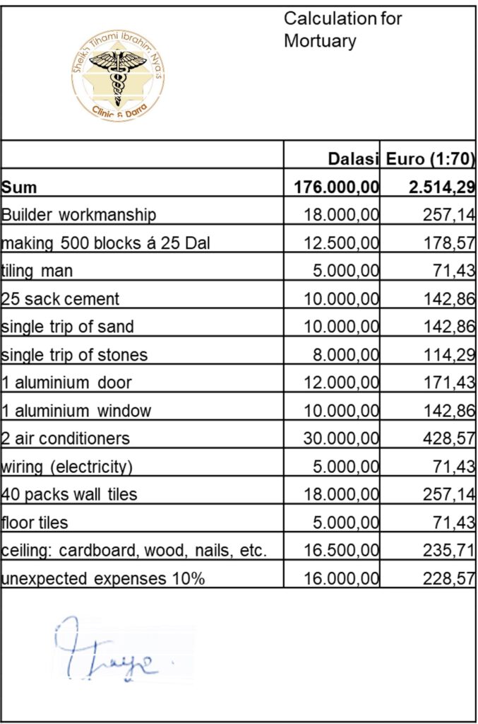 Firstly, the hygiene room will be available to the hospital in Kunkujang Keitaya. Secondly, the room is for people who have died in the immediate vicinity. It serves a neighborhood of around 30,000 people.