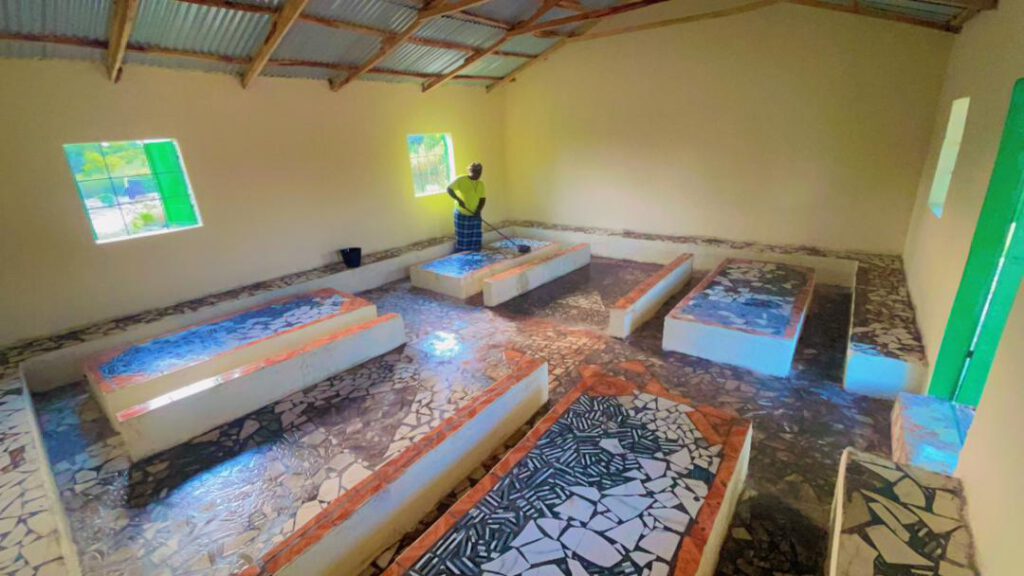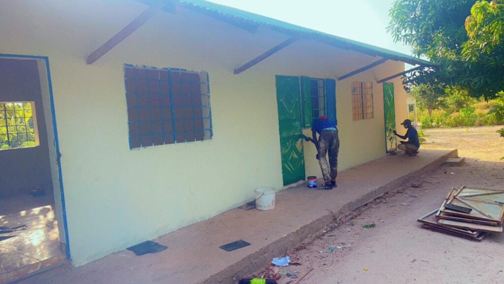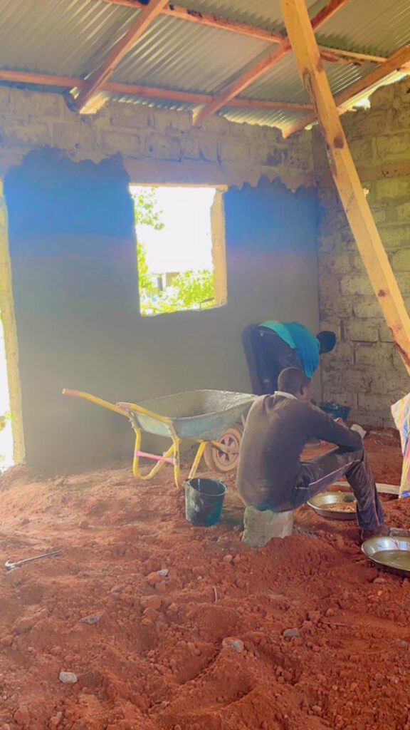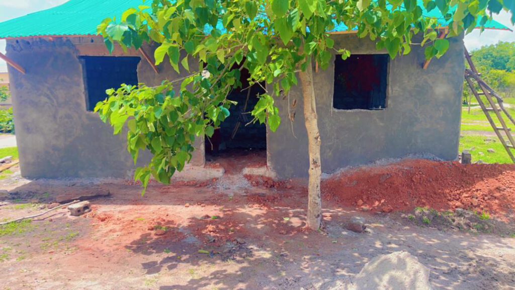 Wir sind so stolz und glücklich, diesen wichtigen Bauabschnitt geschafft zu haben! Endlich können unsere Kinder wettergeschützt und hygienisch ihr Mittagessen zu sich nehmen. Nur der Anbau der Veranda ist noch nicht ganz abgeschlossen: